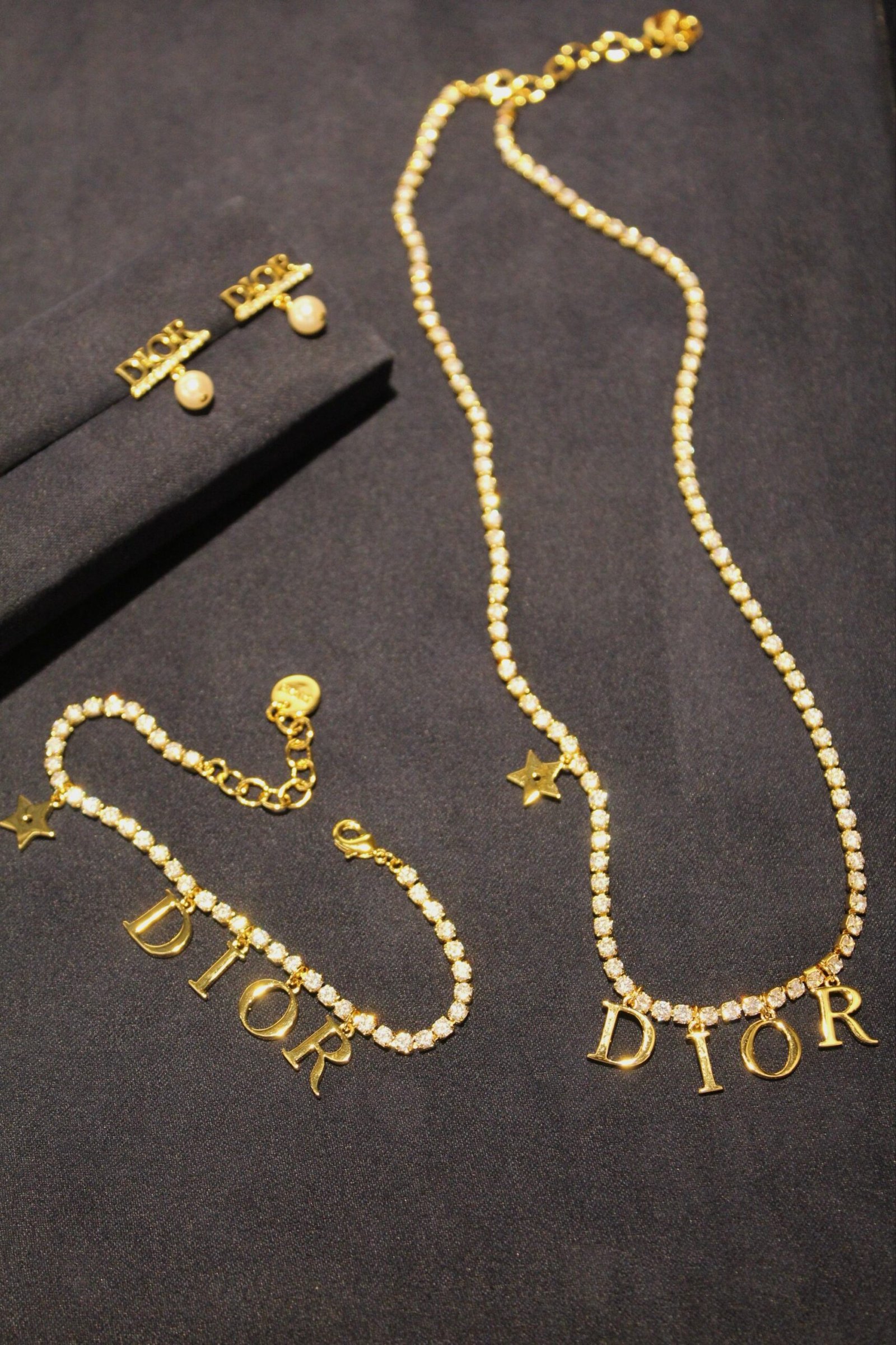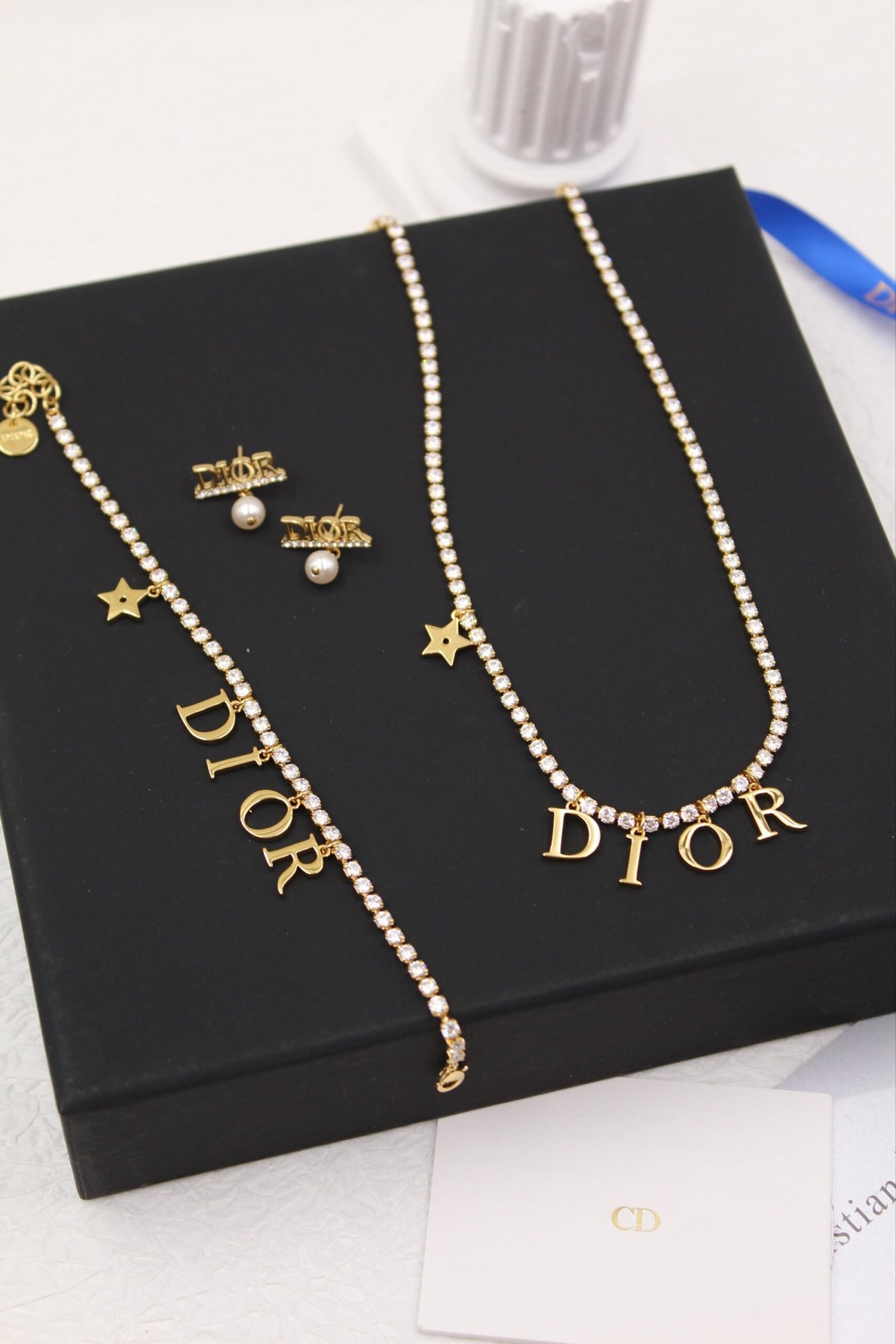 CD logo heart CHAIN NECKLACE, EARINGS