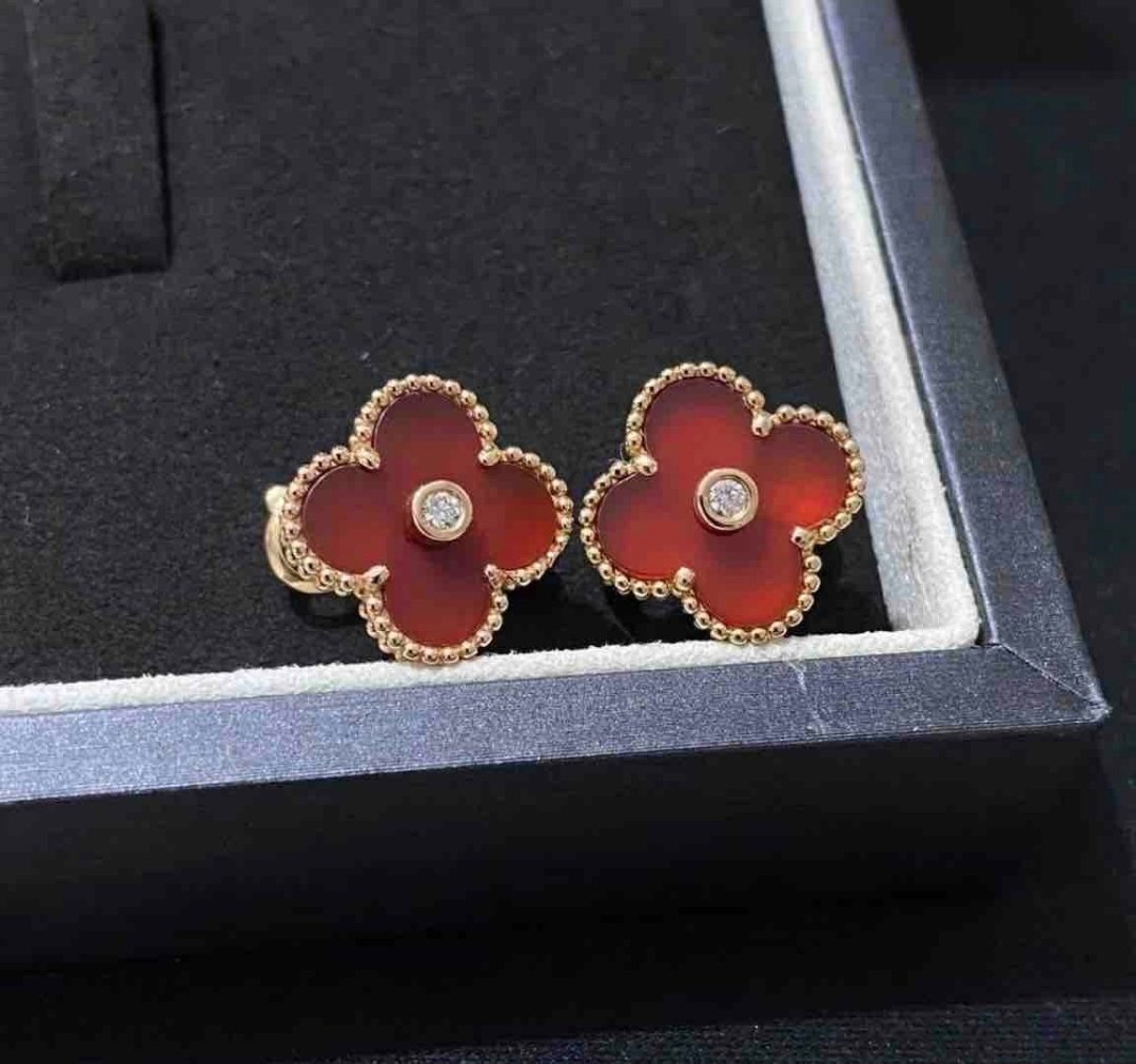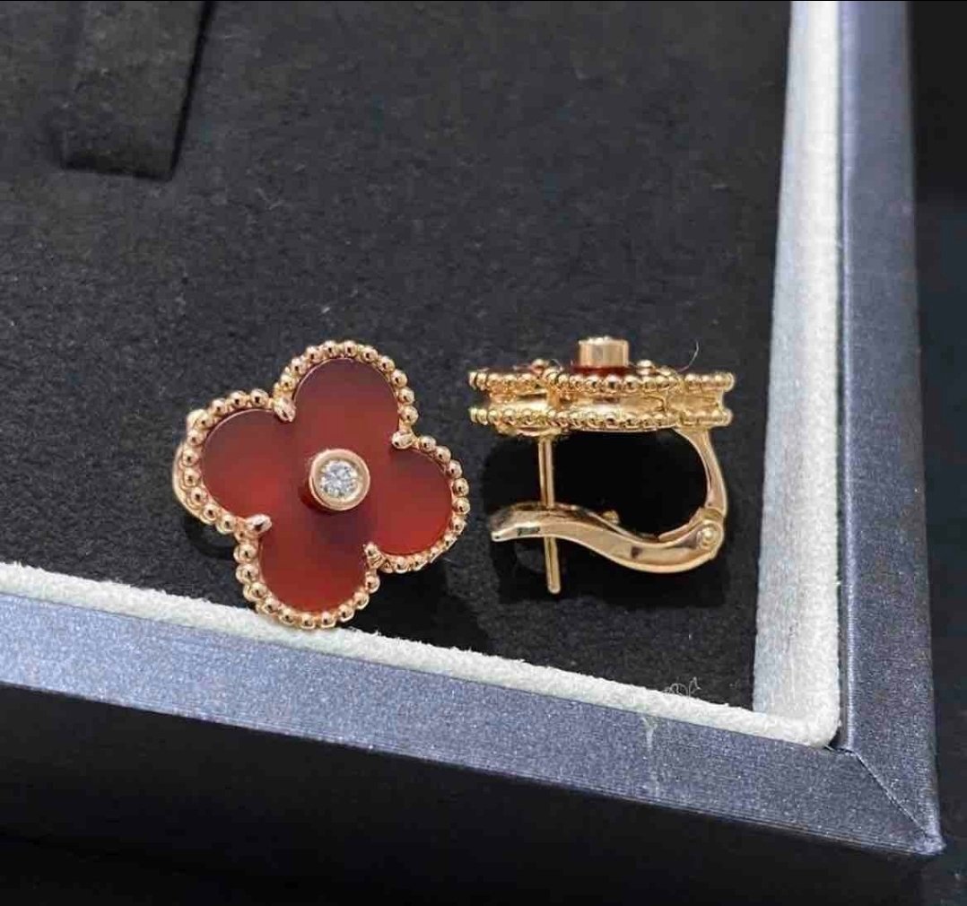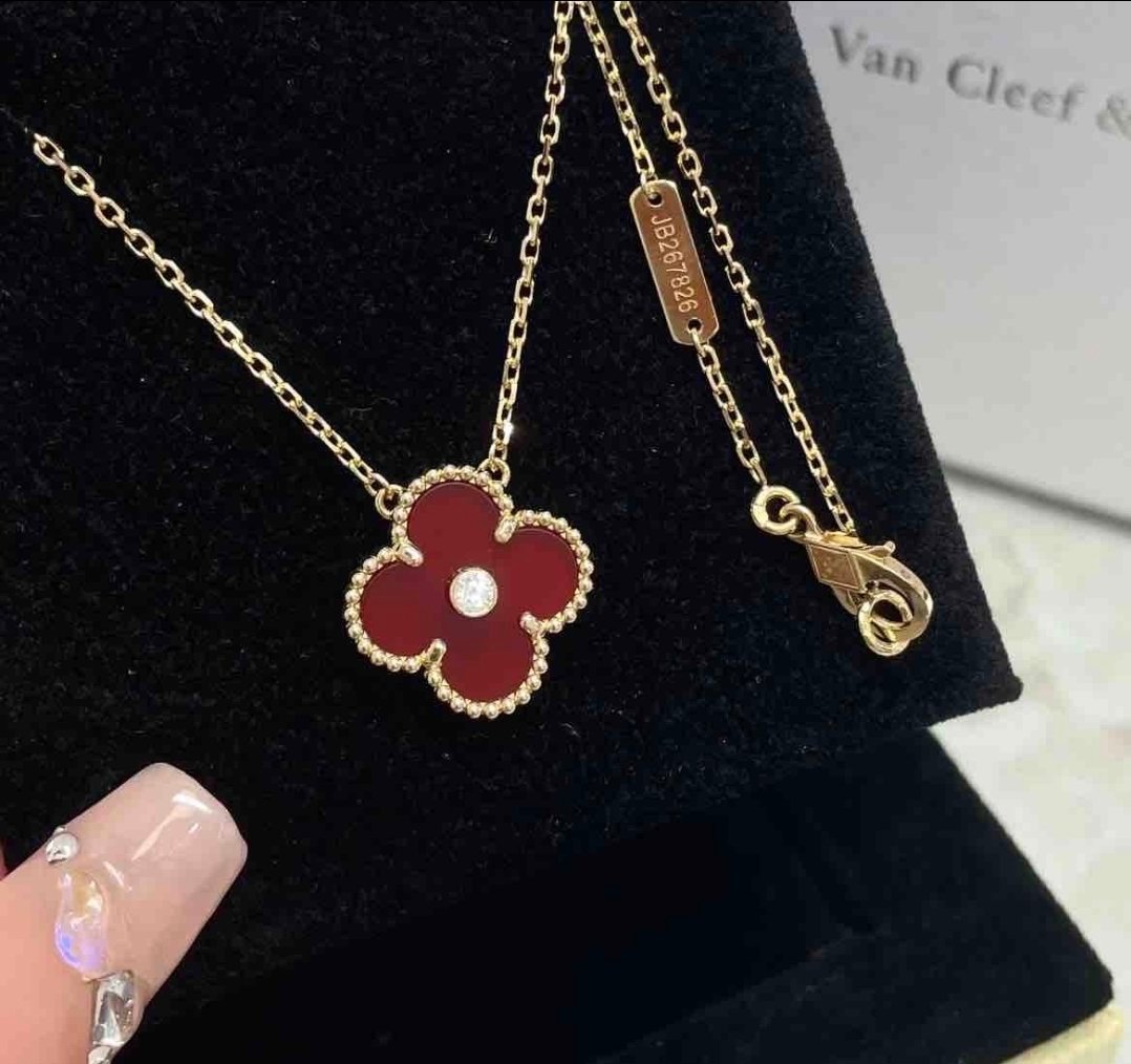 Alhambra 1 Motif With Diamond limited edition Necklace & Earings in Maroon Color
